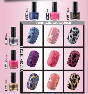 Combina as cores base com as cores craquelê e podes obter até 9 estilos brilhantes para as tuas unhas.